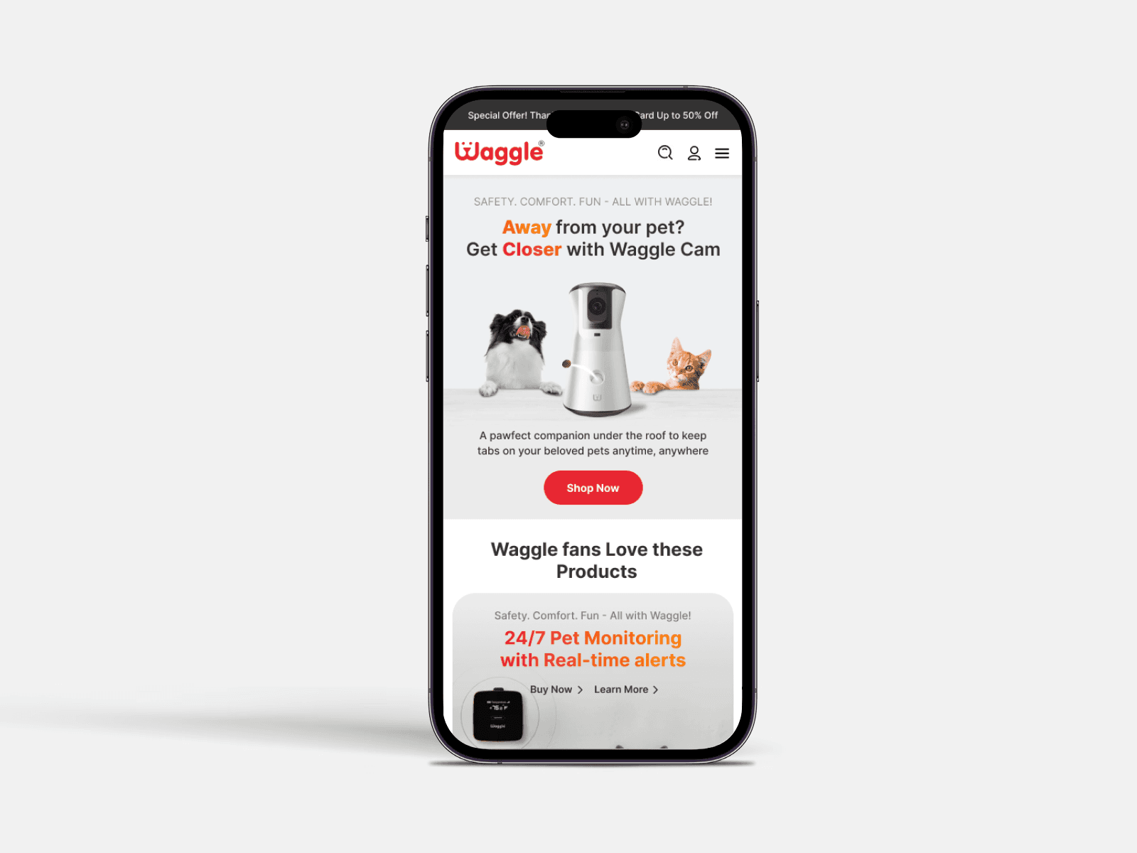 Research Insights: From reviewing competitor patterns and user behavior for tech-based pet products, I identified three key expectations: Immediate clarity about what the product does Trust indicators (numbers, testimonials, brands) Quick access to the purchase flow These insights guided the redesigned layout.